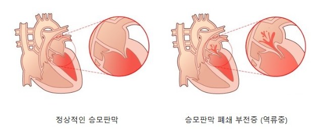 심장에는 좌심실, 좌심방, 우심실, 우심방이라는 4개의 방과 각각의 방의 문 역할을 하는 4개의 밸브가 있습니다. 그 밸브 중 하나인 승모판은 좌심방과 좌심실 사이에 있으며 심장 수축기에 폐쇄되어 역류를 방지하고 대동맥으로 향하는 혈류를 만듭니다. 폐로 산소를 섭취한 혈액은 좌심방에 들어간 후 승모판을 통과하여 좌심실로 들어가 전신으로 송출됩니다. 승모판 폐쇄 부전증은 심장이 수축했을 때 혈액이 좌심실에서 좌심방으로 역류하는 질병입니다. 중증화되면 심장의 펌프 기능 자체가 하락한 심부전 이라는 상태가 되어 다양한 증상을 일으킵니다. 심부전 은 사망률이 높은 질병이므로 그렇게 되기 전에 적절한 치료를 하는 것이 중요합니다.